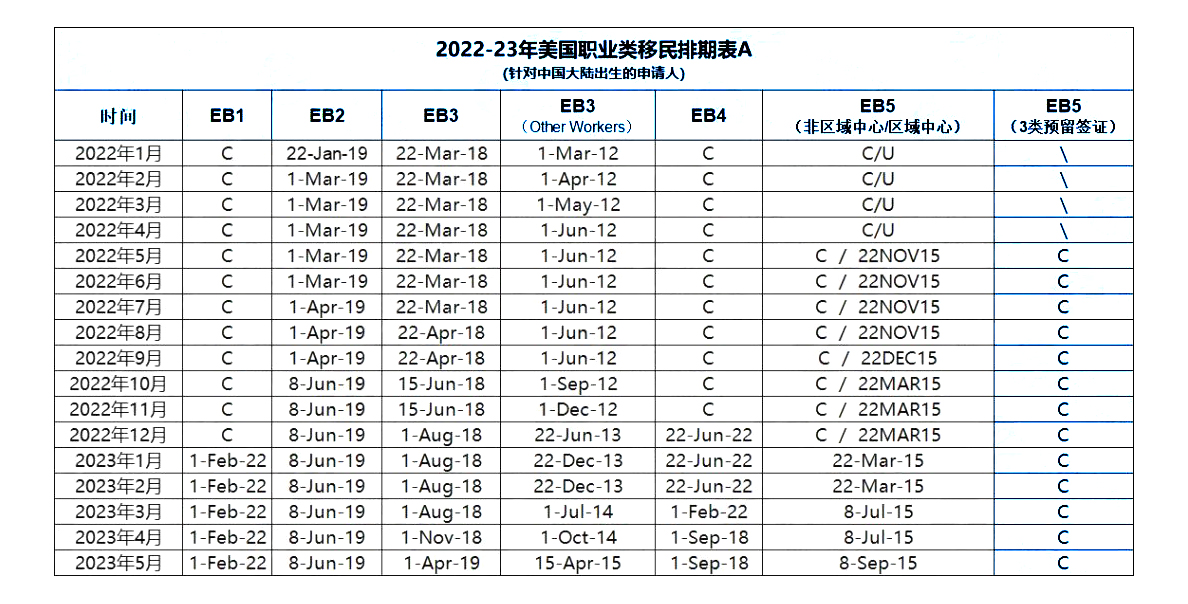 2023年5月美国移民排期表出炉,EW3表现亮眼~